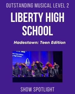 Liberty also received nominations for Outstanding Direction (Gehrke), Outstanding Student Technical Execution (Rachel Church), Outstanding Musical Direction (Carter Datz), and Outstanding Ensemble, as well as two nominations for Outstanding Lead Actor (Tyler Bugg and Sam Woollard). In the Outstanding Musical Level 2 medley, the cast will be performing “Wait For Me (Reprise)” during the SLHSMTA on May 15.