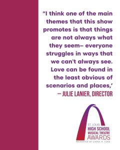 “I think one of the main themes that this show promotes is that things are not always what they seem– everyone struggles in ways that we can’t always see. Love can be found in the least obvious of scenarios and places,” Lanier said.